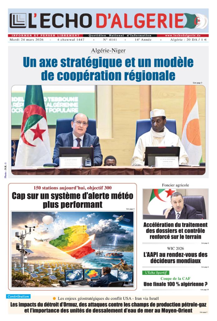 L’Echo d’Algérie, Quotidien National d’Information édité par Echo Médias Algérie Sarl, venu enrichir la presse écrite, jeune par son âge certes mais en réalité c’est le prolongement d’un idéal, d’un combat, d’un rêve.