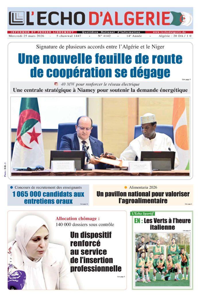 L’Echo d’Algérie, Quotidien National d’Information édité par Echo Médias Algérie Sarl, venu enrichir la presse écrite, jeune par son âge certes mais en réalité c’est le prolongement d’un idéal, d’un combat, d’un rêve.