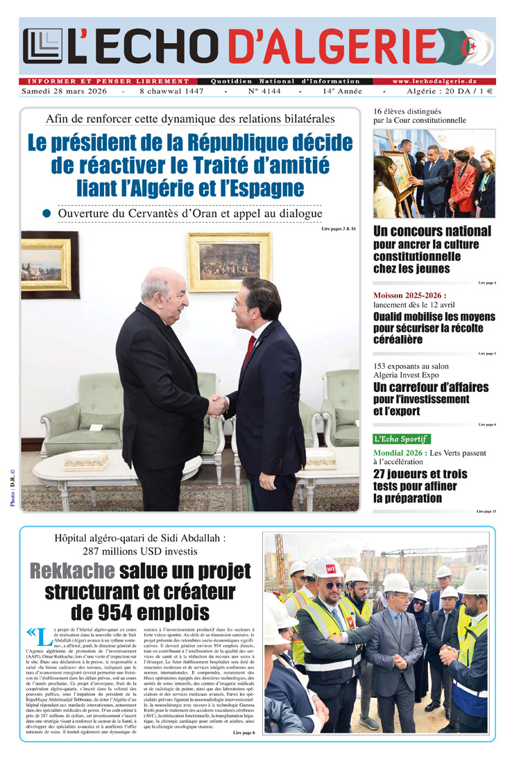 L’Echo d’Algérie, Quotidien National d’Information édité par Echo Médias Algérie Sarl, venu enrichir la presse écrite, jeune par son âge certes mais en réalité c’est le prolongement d’un idéal, d’un combat, d’un rêve.