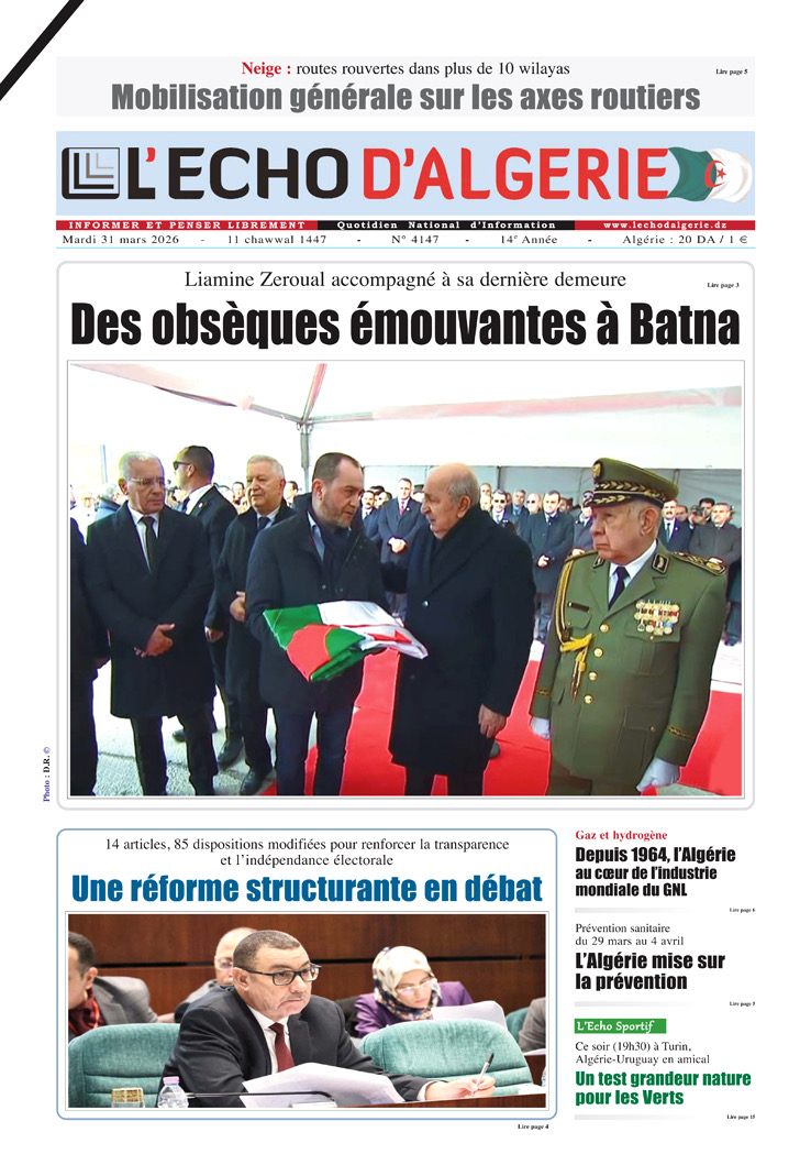 L’Echo d’Algérie, Quotidien National d’Information édité par Echo Médias Algérie Sarl, venu enrichir la presse écrite, jeune par son âge certes mais en réalité c’est le prolongement d’un idéal, d’un combat, d’un rêve.