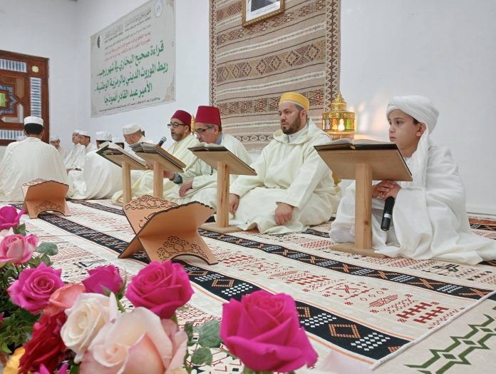 Placée sous le thème : « Lecture du Sahih Al-Boukhari durant le mois de Rajab : relier l’héritage religieux à la symbolique nationale… l’Émir Abdelkader comme modèle »*, cette rencontre a rassemblé des cadres de l’administration centrale, des membres du Comité ministériel de la fatwa, ainsi qu’un groupe d’imams et de mourchidates (guides religieuses). La cérémonie s’inscrit dans une démarche visant à valoriser le patrimoine religieux authentique et à renforcer son lien avec l’identité nationale et les figures historiques marquantes, notamment celle de l’Émir Abdelkader. Dans le même temps, l’ensemble des imams à travers toutes les wilayas du pays ont pu suivre les travaux et interventions grâce aux technologies de visioconférence, assurant ainsi une participation élargie des encadrants religieux à l’échelle nationale.