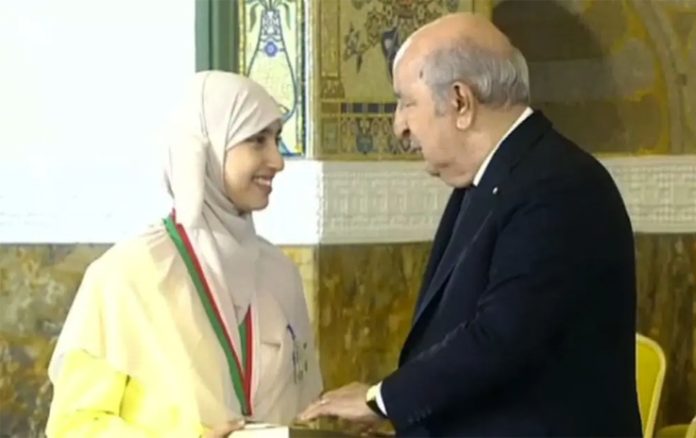 Le chef de l’État a remis personnellement des médailles, des cadeaux symboliques et des récompenses financières aux lauréats les plus brillants de cette session, saluant l’excellence, la persévérance et les efforts fournis par ces jeunes dans leur parcours scolaire. Pour l’examen du Baccalauréat, la première lauréate à l’échelle nationale, Raounak Zani, du lycée Sahraoui-Zoghlami de Taoura (wilaya de Souk Ahras), a été distinguée pour sa moyenne exceptionnelle de 19,70 dans la filière Génie électrique. Elle est suivie par Yahiaoui Malak, du lycée Mekkioui-Mamoune (wilaya de Mascara), qui a obtenu une moyenne de 19,52 en Mathématiques, et par Nardjes Kamel, du lycée Zineb-Oum-El-Massakine (Alger), également avec une moyenne de 19,52 dans la filière Mathématiques techniques-Génie électrique. Le président de la République a également honoré les meilleurs élèves des écoles des Cadets de la Nation. Saadi Mouayad a obtenu une moyenne de 19,41 dans la filière Mathématiques, et Hadjer Keddari une moyenne de 18,65 en Sciences expérimentales. Dans la catégorie des élèves à besoins spécifiques, trois lauréats ont été mis à l’honneur : Hamdani Salah du lycée Allagui-Salah de Dréan (El Tarf), avec une moyenne de 18,29 en Gestion-Économie ; Mounib Abderrahmane du lycée Frères-Chouhada-Lamrani (Batna), avec 16,87 ; et Tidjani Ilyes du lycée Hali-Abdelkarim (El Oued), avec 15,93 en Sciences expérimentales. Concernant l’examen du BEM, le président Tebboune a distingué Talhaoui Meriem du CEM Ramdani-Hassouni (Biskra), qui a obtenu une moyenne de 19,58, Bakir Anis du CEM Khennouche-Ahmed (Alger), avec 19,46, et Kheddache Fatima du CEM Amira-Moussa (Jijel), également avec 19,46. Dans la même catégorie, le président a également honoré Belgourane Hadjala Mohamed Islam, premier lauréat des Cadets de la Nation au niveau national, avec une moyenne de 19,04. Trois élèves à besoins spécifiques ont été récompensés pour leur réussite au BEM : Meghezi Mohamed Ayoub (18,01), Djaâfari Alaa Ayat Al-Rahmane (17,44) et Kadi Halima (15,81). La cérémonie s’est conclue par une photo-souvenir rassemblant l’ensemble des lauréats avec le président de la République, symbole de reconnaissance nationale à l’égard de cette jeunesse prometteuse, porteuse d’avenir pour l’Algérie.