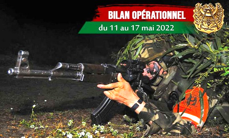 Ainsi, dans le cadre de la lutte antiterroriste, des détachements de l’ANP «ont arrêté 7 éléments de soutien aux groupes terroristes dans des opérations distinctes à travers le territoire national, tandis qu’un autre détachement a récupéré, à Illizi, deux pistolets-mitrailleurs de type Kalachnikov et une quantité de munitions. De même, deux bombes de confection artisanale ont été découvertes et détruites à Batna et Bouira». En matière de lutte contre la criminalité organisée et «en continuité des efforts intenses visant à contrecarrer le fléau du narcotrafic dans notre pays», des détachements combinés de l’ANP «ont arrêté, en coordination avec les différents services de sécurité au niveau des territoires des 2e 3e Régions militaires, 14 narcotrafiquants et déjoué des tentatives d’introduction d’immenses quantités de drogues, à travers les frontières avec le Maroc s’élevant à 15 quintaux et 11 kilogrammes de kif traité, alors que 22 autres narcotrafiquants ont été arrêtés en leur possession 25 kilogrammes de la même substance et 190 067 comprimés psychotropes lors de diverses opérations exécutées à travers les autres Régions militaires». Par ailleurs, les services de la Gendarmerie nationale d’Oran «ont appréhendé un individu, découvert un atelier de réparation d’armes à feu et récupéré 4 fusils de chasse, 2 fusils à pompe, 16 fusils de confection artisanale, ainsi que des parties et des pièces de rechange pour armes à feu et d’autres outils utilisés dans la réparation et la maintenance des armes. À Tamanrasset, Bordj Badji Mokhtar, In Guezzam, Djanet et Tindouf, des détachements de l’ANP «ont intercepté 202 individus et saisi 26 véhicules, 219 groupes électrogènes, 139 marteaux- piqueurs, 55 détecteurs de métaux, des quantités d’explosifs, des outils de détonation et des équipements utilisés dans des opérations d’orpaillage illicite, ainsi que 46 tonnes de mélange d’or brut et de pierres, tandis que 3 autres individus ont été appréhendés et 4 fusils de chasse, 3000 cartouches, 62 300 paquets de tabacs, 31 204 unités de diverses boissons et 42,5 tonnes de denrées alimentaires destinées à la contrebande ont été saisis à Ouargla, El Oued, Biskra, Adrar, Tébessa et Bordj Badji Mokhtar». Pour leur part, des Garde-frontières «ont déjoué des tentatives de contrebande de quantités de carburants s’élevant à 13.592 litres à Tébessa, El-Tarf et Souk Ahras». Dans un autre contexte, les garde-côtes «ont déjoué, au niveau de nos côtes nationales, des tentatives d’émigration clandestine et ont procédé au sauvetage de 86 individus à bord d’embarcations de construction artisanale, alors que 147 immigrants clandestins de différentes nationalités ont été arrêtés à travers le territoire national». Ces opérations s’inscrivant dans la «dynamique des efforts soutenus de la lutte antiterroriste et contre la criminalité organisée multiforme», ont abouti à des «résultats de qualité qui reflètent le haut professionnalisme, la vigilance et la disponibilité permanente de nos Forces armées à travers tout le territoire national».