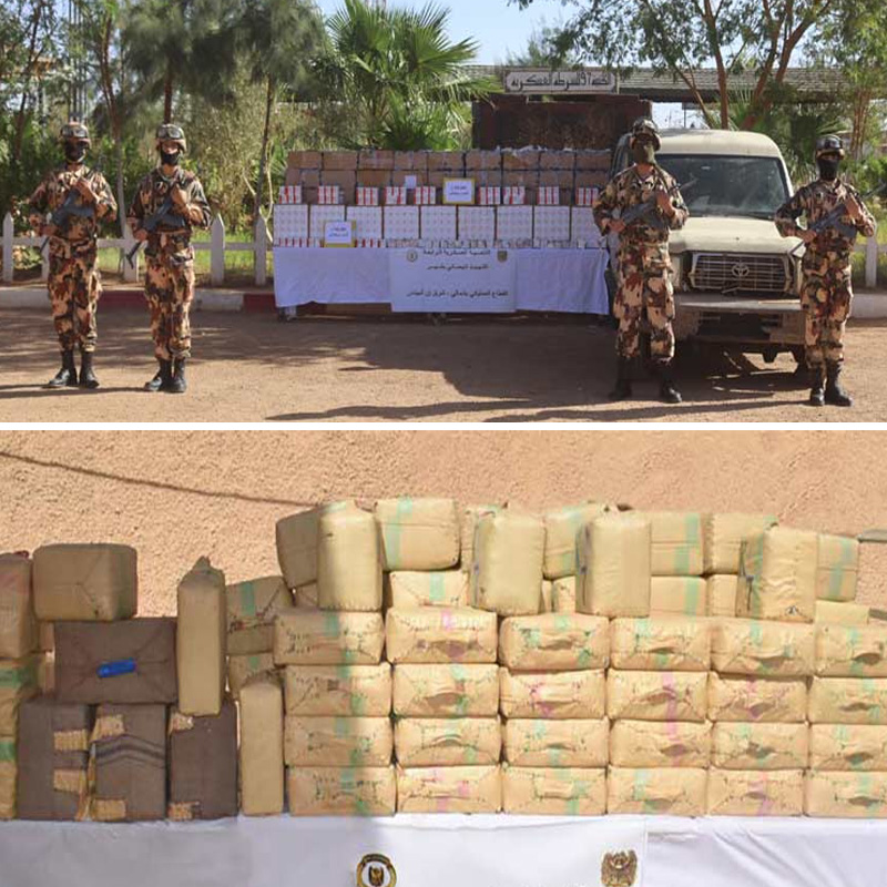 Ainsi et au chapitre de la lutte contre le terrorisme, le MDN a fait état de la reddition de 04 éléments terroristes et de l’arrestation de 14 éléments de soutien au terrorisme lors de plusieurs opérations menées sur le territoire national.Par ailleurs et dans le cadre de la lutte contre le crime organisé, le MDN a annoncé l’arrestation de 41 trafiquants de drogue et la saisie de 32,58 quintaux de kif traité de provenance du Maroc et 720548 comprimés psychotropes.
