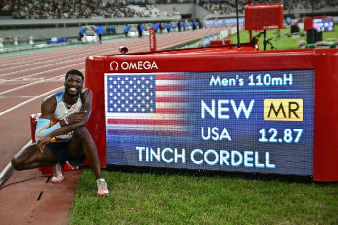 Le hurdleur américain Cordell Tinch a impressionné samedi en remportant le 110 mètres haies du meeting Ligue de diamant de Shanghai/Keqiao en 12 sec 87 pour devenir le quatrième meilleur performeur de l’histoire de la discipline. A 24 ans et en l’absence de son compatriote Grant Holloway, champion olympique de la discipline qui a renoncé à courir samedi, Tinch a créé la surprise en explosant son record personnel pour couper la ligne d’arrivée en 12 sec 87 (vent: + 0,6 m/sec). Avec un tel chrono, il devient le quatrième meilleur performeur de l’histoire, derrière les Américains Aries Merritt (12.80 en 2012), Grant Holloway (12.81) et Devon Allen (12.86) et à égalité avec le Cubain Dayron Robles.