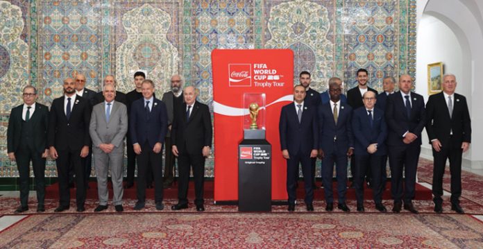 Le président de la République, Abdelmadjid Tebboune, a reçu, ce dimanche 8 février 2026, une délégation de la Fédération internationale de football (FIFA) conduite par l’ancien international allemand Jürgen Klinsmann, qui lui a remis la réplique du trophée de la Coupe du monde 2026, à laquelle prendra part l’équipe nationale. La version originale du trophée de la Coupe du monde de la FIFA est en visite en Algérie, en présence de plusieurs joueurs de l’équipe nationale ainsi que de l’ancien international allemand, dans le cadre d’une visite qui s’étendra sur deux jours.
