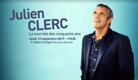 Organisé par l’Institut français d’Algérie, le spectacle inscrit dans le  cadre de la tournée (mondiale) des cinquante ans de l’artiste, a drainé des  centaines de fans de ce chanteur, auteur d’une vingtaine d’albums écoulés à  des millions d’exemplaires à  travers le monde. Allure d’un jeune homme, le chanteur de 70 ans, accompagné de Benjamin  Constant, au piano, claviers et accordéon et Evert Verhees à la guitare, a  interprété ses plus grands succès  comme « Fais moi une place », « Laissez  entrer le soleil »,  « Ce n’est rien », « Les séparés », ou encore  « C’est en  septembre », entrecoupés d’autre chansons de son large répertoire. En guise d’hommage à Charles Aznavour, autre icône de la chanson  française, Julien Clerc a interprété  « For me formidable », un tube de cet  artiste disparu il y a un an. Des membres du corps diplomatique accrédité en Algérie dont l’ambassadeur  de France à Alger, Xavier Driencourt, ont assisté à ce spectacle marquant  le parcours « brillant » et continu de cet artiste qui se produit en concert  pour la deuxième fois en Algérie, 44 ans après. « Je me suis produit à la salle Atlas (Alger) en 1975. Je suis très ravi de  retrouver un public encore plus accueillant, chaleureux et formidable  qu’auparavant « , se souvient encore Julien Clerc. Né en 1947 à Paris, Julien s’intéresse à la musique depuis sa tendre  enfance.   Au début des années 60, alors lycéen, il compose et joue déjà ses  premières compositions. A vingt ans, Julien monte pour la première fois sur  la scène de l’Olympia  avant d’éditer en 1969 son premier album, primé par  l’Académie Charles Cros. Le chanteur et pianiste s’est fait connaitre dans son pays et à l’étranger  grâce à une discographie riche d’une vingtaine d’albums et des titres  populaires comme « Partir », « Si j’étais elle » ou encore « Mélissa ».