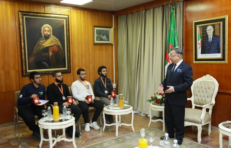 Il s’agit de l’équipe d’étudiants de l’Ecole nationale supérieure de mathématiques (ENSM), pôle scientifique et technologique de Sidi Abdellah (Alger), composée de Benmoulouka Mohamed Amir, Aït Hamadouche Haitham, Boufadjighen Abdenassir et Hamadi Abdelillah, ainsi que deux professeurs encadreurs de l’Ecole pour leurs efforts dans l’accompagnement de ces étudiants. Dans son allocution, à cette occasion, M. Baddari a précisé que ce résultat honorable réalisé, en remportant «une médaille d’or et deux médailles d’argent, en sus d’une attestation honorifique, est la preuve irréfutable que l’enseignement des mathématiques à l’ENSM est remarquable et excellent». Il «reflète aussi l’investissement stratégique fondé sur les sciences et la technologie, approuvé par le président de la République, M. Abdelmadjid Tebboune, à travers la création de cette école, en sus de l’Ecole nationale supérieure d’intelligence artificielle (ENSIA)», a-t-il ajouté. Dans le même sillage, le ministre a estimé que ces résultats reflètent «le grand bond réalisé dans le domaine de l’enseignement des sciences exactes et de la technologie, devenues la locomotive de l’Algérie victorieuse».De leur côté, les étudiants ont exprimé leurs remerciements au président de la République pour son soutien, et au ministère de l’Enseignement supérieur pour son accompagnement et l’opportunité qui leur a été offerte pour participer à ces concours internationaux, affirmant que ce sacre les encourage à aller de l’avant pour réaliser d’autres succès.