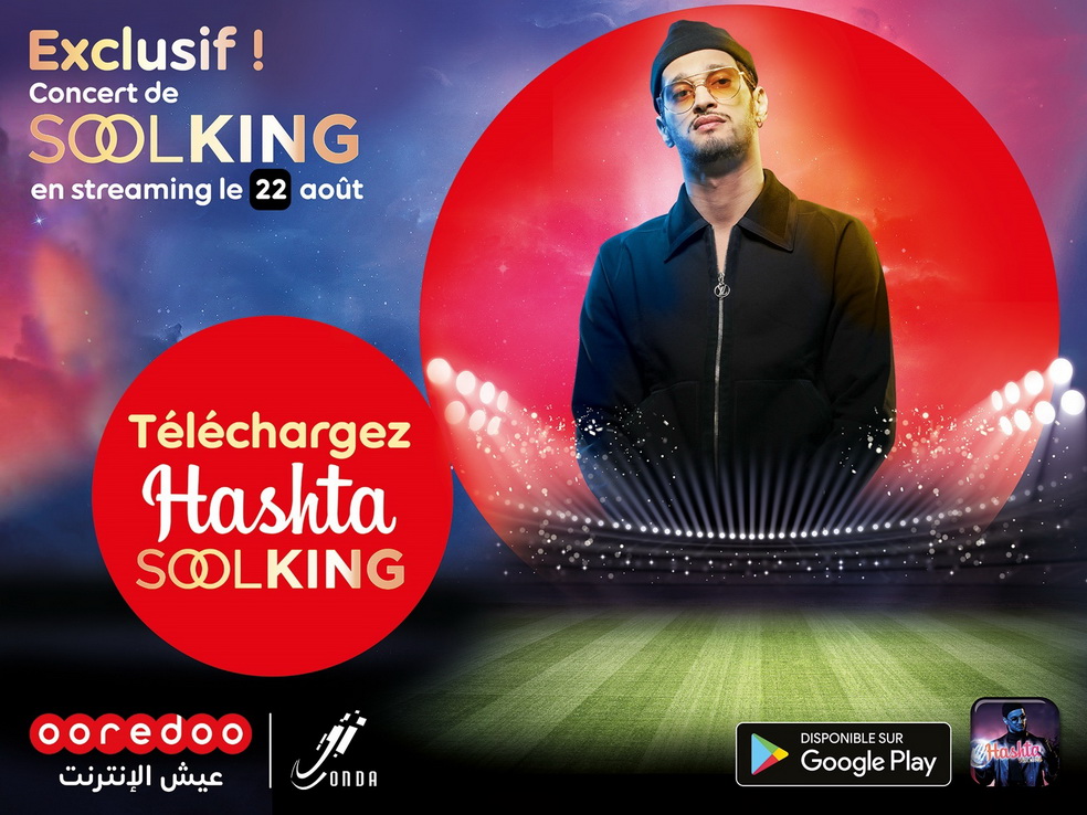 Organisé par l’Office National des Droits d’Auteurs et Droits Voisins (ONDA), ce concert très attendu par des milliers de fans du célèbre rappeur algérien, est l’évènement artistique phare de cette saison estivale 2019. En prévision de ce grand concert, Ooredoo lance pour les  fans du chanteur l’application Hashta Soolking. Disponible sur l’offre Hashta, cette application va permettre aux jeunes de visionner le live du concert en exclusivité et en streaming sur leur téléphone portable.Totalement dédiée aux jeunes, l’offre Hashta continue de surprendre ses clients avec plein de nouveautés exclusives et inédites. Pour rappel, Ooredoo a sponsorisé dans le cadre de son partenariat avec l’ONDA, de grands évènements musicaux en Algérie notamment les concerts du roi du Raï Cheb Khaled et du Chantre de la musique kabyle Idir. En s’associant à cet important évènement musical, Ooredoo réaffirme sa volonté de partager avec les Algériens des moments de joie et de fête.
