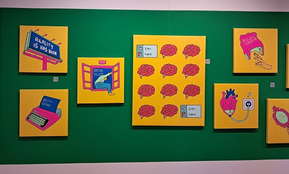Dans sa nouvelle exposition intitulée «Simulacre», le plasticien Yasser Ameur, plus connu sous son nom d’artiste «l’homme jaune», propose pour la première fois un travail alliant la peinture et la réalité augmentée, pour continuer sur sa lancée de questionnements de la dépendance aux réseaux sociaux et aux nouvelles technologies.