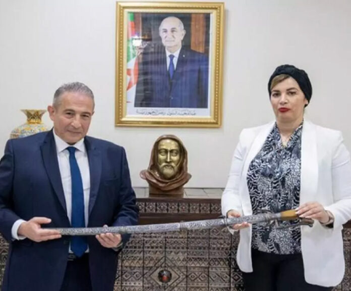 L’ambassadeur de l’Algérie à Paris, Saïd Moussi, a remis à la ministre de la Culture et des Arts, Soraya Mouloudji, l’épée de l’Emir Abdelkader, une pièce archéologique à haute valeur historique qui était programmée à la vente aux enchères à Paris (France).