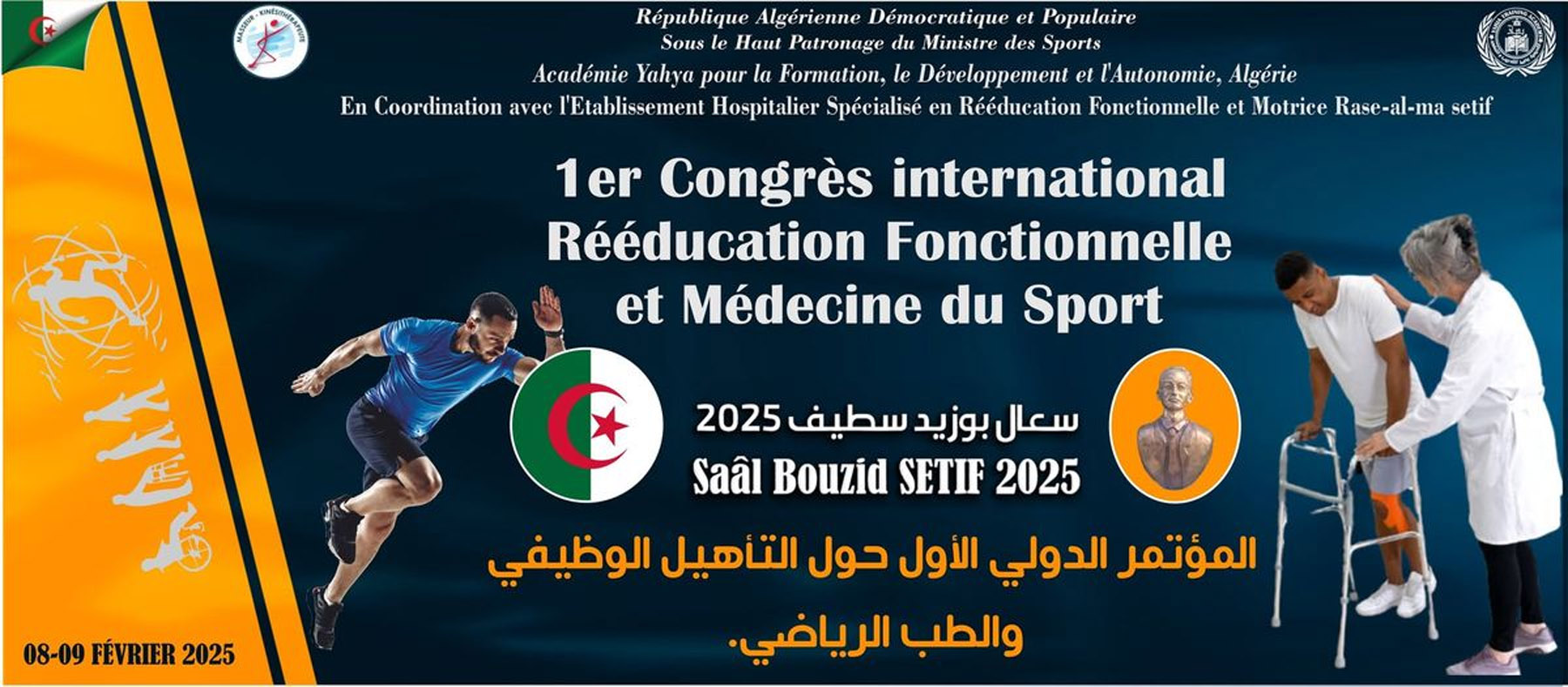 Le 1er congrès international de rééducation fonctionnelle et médecine du sport, baptisé du nom de Saâl Bouzid, premier Martyr des Massacres du 8 mai 1945, réunit, depuis samedi à Sétif, plus de 300 médecins et kinésithérapeutes de toutes les wilayas du pays, du Qatar, de Tunisie et de France. Le directeur général du Centre national de médecine du sport, Omar Bouzeroura, a indiqué à l’APS, en marge de l’ouverture de la manifestation, que cette rencontre de 2 jours est organisée par l’académie d’entraînement « Yahia » de Sétif, en partenariat avec l’établissement hospitalier spécialisé en rééducation et réadaptation de Ras El Ma, sous l’égide des ministères de la Santé et des Sports et du wali de Sétif, Mustapha Limani. Le même responsable a ajouté que les participants débattront de deux axes, à savoir la « médecine du sport » et la « rééducation fonctionnelle » à travers près de 200 communications consacrées, entre autres, à la « scoliose chez l’adulte », la « gestion de la douleur chronique », « le jeûne chez le footballeur » et la « lombalgie de l’athlète », en plus de 20 ateliers dédiés au sujet. De son côté, la président de l’académie organisatrice, Abderrezak Keffi, a souligné que cette rencontre vient « en appui aux efforts de l’Etat en matière de promotion et de développement de la médecine sportive », avant d’ajouter que l’objectif principal de ce congrès international est de « contribuer à l’amélioration des performances sportives, en phase avec le mouvement et le développement que connaît la scène sportive nationale, et d’offrir aux praticiens participants « l’opportunité de côtoyer des experts internationaux en la matière ».