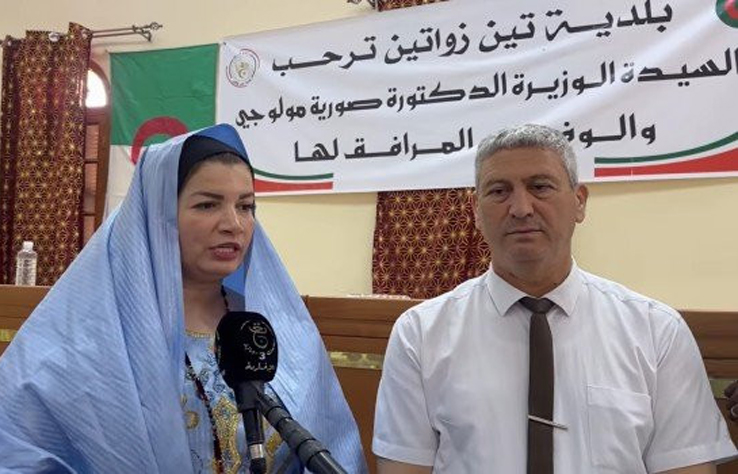 Lors d’une visite de travail et d’inspection dans la wilaya d’In Guezzam, la ministre a souligné que son département « tend à accompagner la femme rurale et la femme saharienne en particulier, afin de lui permettre de bénéficier des différents programmes de soutien mis en place par l’Etat pour faciliter son insertion socio-économique, promouvoir l’entrepreneuriat féminin et renforcer son rôle social et économique ». Elle a relevé, dans ce sens, que la femme au foyer vivant dans les régions frontalières et sahariennes « est au centre de ces priorités », précisant « qu’en dépit des spécificités des régions où elle vit, caractérisées par une géographie et un climat particulier, la femme sahraouie joue un rôle important dans la création d’activités génératrices de revenus pour elle et sa famille et contribue au développement local ». Lors de sa visite d’une exposition des produits féminins sahariens à In Guezzam et Tin Zaouatine, Mme Mouloudji a indiqué que ces initiatives s’inscrivaient dans le cadre de « la politique du ministère visant à accompagner les femmes productives dans la commercialisation de leurs produits et à trouver des mécanismes efficaces pour faire connaitre les créations de la femme au foyer, notamment la femme saharienne et lui permettre d’accéder au marché local ». A l’occasion de cette visite, « des machines et des appareils utilisés dans les domaines culinaires, de la couture, de la broderie et de la tannerie, ont été remis à la femme rurale dans les communes d’In Guezzam et Tin Zaouatine, et ce dans le cadre de l’accompagnement de la femme au foyer dans les projets de création d’entreprise et d’activités génératrices de revenus ». Des attestations de formation « ont également été remises aux femmes ayant bénéficié de sessions de formation dans le cadre de la concrétisation de l’accord conclu entre les secteurs de la Solidarité nationale, de la Famille et de la Condition de la femme et du secteur de la Formation et de l’Enseignement professionnels ».A cet effet, Mme Mouloudji a appelé les services des cellules de proximité « à intensifier les campagnes de sensibilisation pour faire connaitre les avantages des mécanismes mis en place par l’Etat pour soutenir la femme au foyer ».