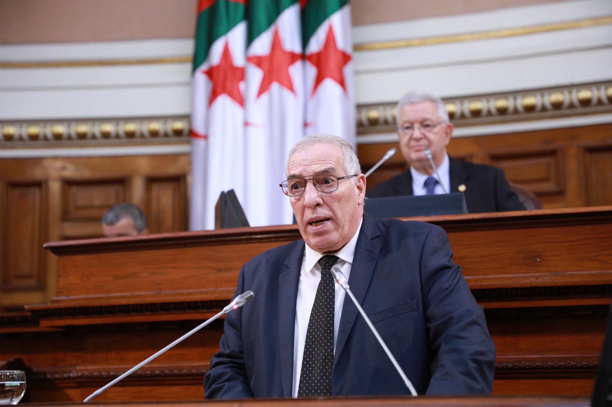 Ce texte a été adopté lors d’une séance plénière présidée par le président du Conseil de la nation, Azouz Nasri, en présence du ministre des Moudjahidine et des Ayants droit, Abdelmalek Tacherift, et de la ministre des Relations avec le Parlement, Nadjiba Djilali. À l’issue de l’adoption, le ministre des Moudjahidine et des Ayants droit a qualifié ce texte de « réponse suprême du peuple algérien, à travers ses représentants, au colonisateur d’hier et à ses fanatiques ». Il a souligné que les crimes commis durant la période coloniale « horrifient la mémoire humaine » et demeurent « une malédiction historique ». Rappelant que « le droit à la mémoire est imprescriptible », M. Tacherift a affirmé que « l’Algérie victorieuse garantit le recouvrement des droits par la solidité de la législation et l’ancrage de l’État de droit ». Il a également salué le travail de la commission paritaire, qui a contribué à renforcer la formulation du texte pour en faire « un arsenal juridique solide et un rempart pour la mémoire nationale, à l’abri de toute interprétation ».
