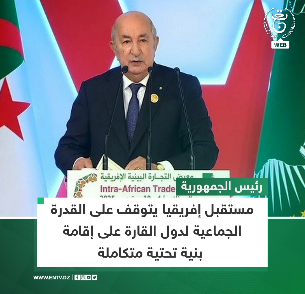 Le président appelle à transformer la ZLECAf en moteur de développement et à offrir des opportunités aux jeunes du continent. Le président de la République, Abdelmadjid Tebboune, a affirmé jeudi à Alger que l’avenir de l’Afrique repose sur « la capacité collective de ses pays à mettre en place une infrastructure intégrée », condition essentielle, selon lui, pour bâtir une Afrique forte et prospère.