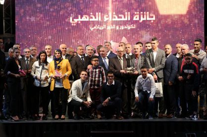 La cérémonie du Soulier d’Or algérien a été organisée cette année par le quotidien El Khabar Erriadhi à l’hôtel Mariott de Constantine en présence de plusieurs invités d’honneur dont Raymond Domenech mais aussi Salah Assad et Lakhdar Belloumi. L’international libyen et ex-pensionnaire du MC Oran, Mohamed Zaâbia a reçu dimanche soir à Constantine le trophée de la 5ème édition du « Soulier d’or » du quotidien sportif « El-Khabar Erriadi », au titre de la saison 2015-2016 récompensant le meilleur buteur de la Ligue 1 algérienne de football. Zaâbia (13 réalisations) qui succède au palmarès à l’ex-buteur du MC El-Eulma Walid Derrardja, a reçu sa récompense des mains de l’ancien sélectionneur de l’équipe de France et finaliste du Mondial-2006, Raymond Domenech. Actuellement en stage à Alger avec sa sélection nationale en prévision de son match face à la Tunisie, programmé le 11 novembre au stade Omar-Hamadi de Bologhine dans le cadre de la deuxième journée des éliminatoires du Mondial russe de 2018, Zaâbia, qui évolue aujourd’hui à l’Espérance sportive de Tunis, s’est dit « fier » de son parcours avec les Hamraoua, lui qui a connu une première saison difficile en Algérie sous le maillot de la JS Kabylie. Pour sa part, Mohamed-Amine Hamia s’est adjugé le trophée du « Soulier d’argent » pour avoir terminé meilleur buteur de la Ligue 2 en inscrivant 15 buts lors du précédent exercice sous les couleurs de l’Olympique Médéa, la conduisant en Ligue 1. Au cours de cette cérémonie à laquelle ont été invités de nombreux sportifs et anciennes gloires de l’équipe nationale de football, d’autres trophées ont été remis aux footballeurs et athlètes ayant brillé l’an passé. Un hommage à titre posthume a été rendu à Mohamed Diabi, ancien président de la Fédération algérienne de football et du MO Constantine, tandis que Mohamed Mhaya et Amar Guotari se sont vu respectivement décerner le trophée du plus ancien dirigeant de foot algérien et celui d’arbitre. En plus de la remise d’un trophée symbolique aux meilleurs buteurs des deux divisions professionnelles de la saison écoulée, c’etait l’occasion de récompenser plusieurs acteurs du sport de toutes les générations. Monsieur Abderrahmane Benhamadi, Président du conseil d’administration de Condor Electronics n’a pas manqué de déclarer à l’inauguration de la cérémonie, l’engagement de Condor envers la promotion et l’encouragement des jeunes talents, des sports et de toutes les valeurs qu’ils inculquent, correspondant entièrement aux ambitions de l’enseigne d’excellence, d’innovation et de développement. Il a aussi donné rendez-vous aux convives pour la prochaine édition, à la ville de Oued Souf.