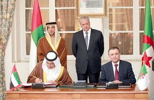 La cérémonie de signature s’est déroulée à la résidence d’État de Zéralda, en présence du Premier ministre, Abdelmalek Sellal, et du vice-président du Conseil des ministres et ministre des Affaires de la présidence des Émirats arabes unis, Cheikh Mansour Ben Zayed Al Nahyan. En effet, le premier mémorandum, qui a trait à l’investissement minier, a été signé, du côté algérien, par le ministre de l’Industrie et des Mines, Abdessalem Bouchouareb, et, du côté émirati, par le ministre d’État aux Affaires financières, Obaid Bin Humaid Al Tayer. Le deuxième accord a été signé, du côté algérien, par le gouverneur de la Banque d’Algérie, Mohamed Loukal, et, du côté émirati, par Moubarak El Mansouri, gouverneur de la Banque centrale.